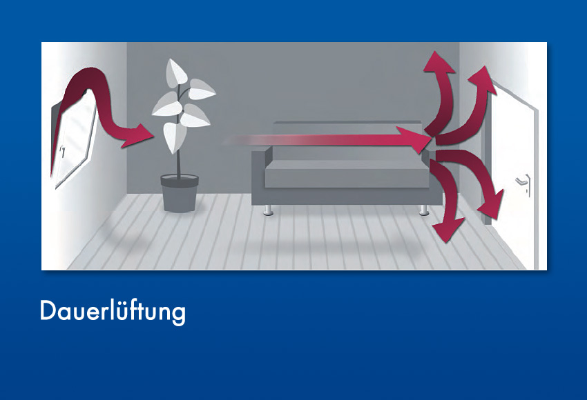 Pflege und Wartung von HolzfensternDurch richtiges Lüften sorgen Sie nicht nur für ein angenehmens Raumklima und vermeiden die Bildung von Schimmelpilzen, sondern sparen gleichzeitig Heizkosten. Durch längeres Kippen der Fenster kühlen Wände etc. aus. Beim Heizen muss dann wieder viel Energie aufgewendet werden. Besser und effektiver sorgen Sie für Frischluft durch gezieltes Öffnen aller Fenster und Türen. Dadurch entsteht ein Durchzug, der die Luft in Ihren Wohnräumen in nur zwei bis vier Minuten gänzlich erneuert.