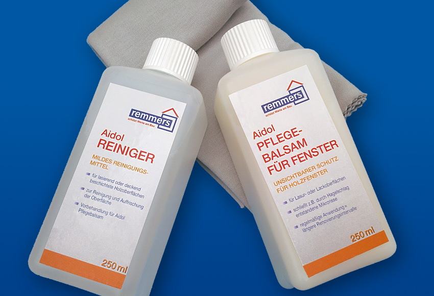Bei jeder Reinigung achten Sie auf kleine Beschädigungen und beseitigen diese gemäß Anleitung im Kapitel „Ausbessern und Überarbeiten der Oberfläche von Holzfenstern“ (im PDF siehe unten). Für Haustüren gibt es ein spezielles Pflegeset, abgestimmt auf die Behandlung größerer Flächen.